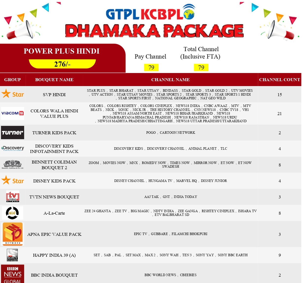 GTPL RECOMMENDED PACKS